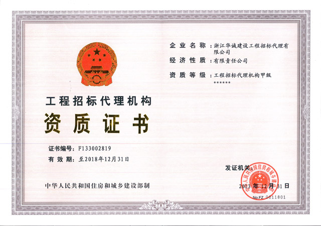 工程招標(biāo)代理機(jī)構(gòu)資質(zhì)證書